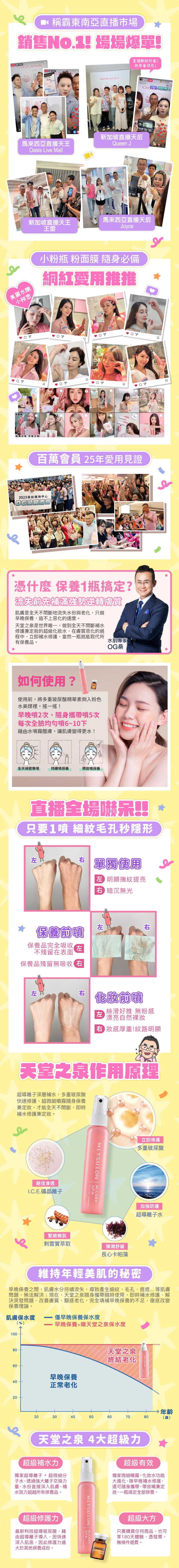 天堂之泉是世界唯一,做到全天不間斷補水修護兼定妝的超級化妝水,在膚質惡化的過程中,立即補水修護,當然1瓶就能取代所有保養品。