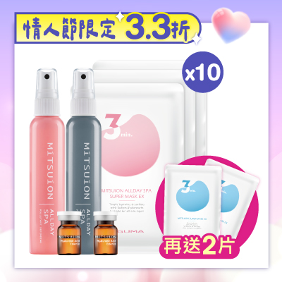 秘之湧天堂之泉(緋霞粉)80ml+4g+秘之湧天堂之泉(晨霧灰)80ml+4g+秘之湧天堂之泉玻尿酸水面膜EX 10片
