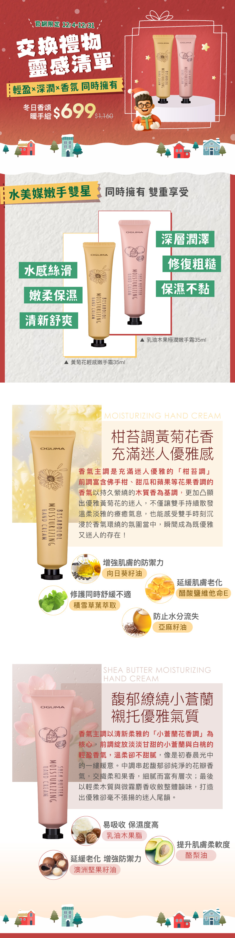 乳油木果極潤嫩手霜:蘊含豐富乳油木果與小蒼蘭花香,如絲緞般滲入肌底,清香優雅雙手柔嫩。