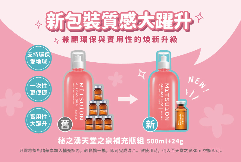4. 每次補充前,建議以少量飲用水沖洗秘之湧天堂之泉空瓶。